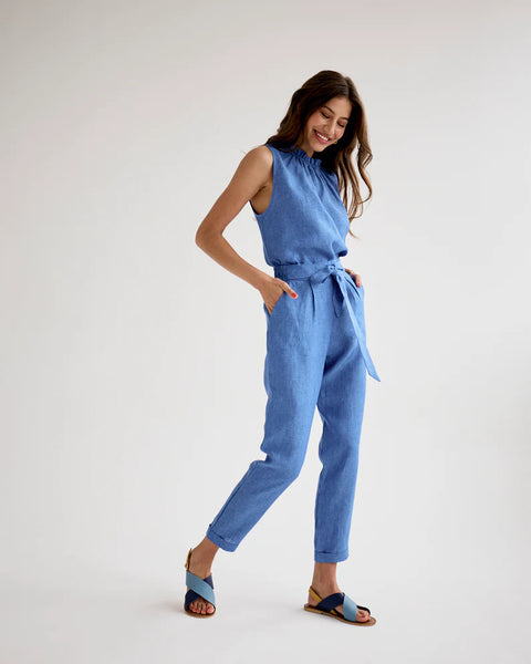 Frill-Neck Top - Blue Linen