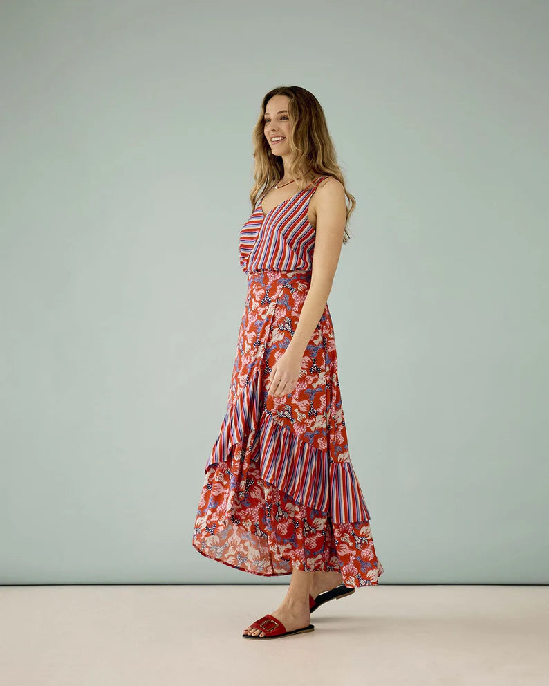 Kick off summer right with our jungle fever Wrap Skirt! This versatile garment features a double frill in a contrast print for added fiesta (hello Blue Rio Floral!), and can be easily dressed up or down. Its adustable fit, thanks to the self-tie, makes it purrrfect for any body type.