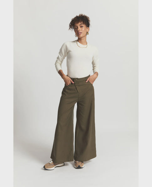 Claude Wide Leg Trouser - Dark Olive