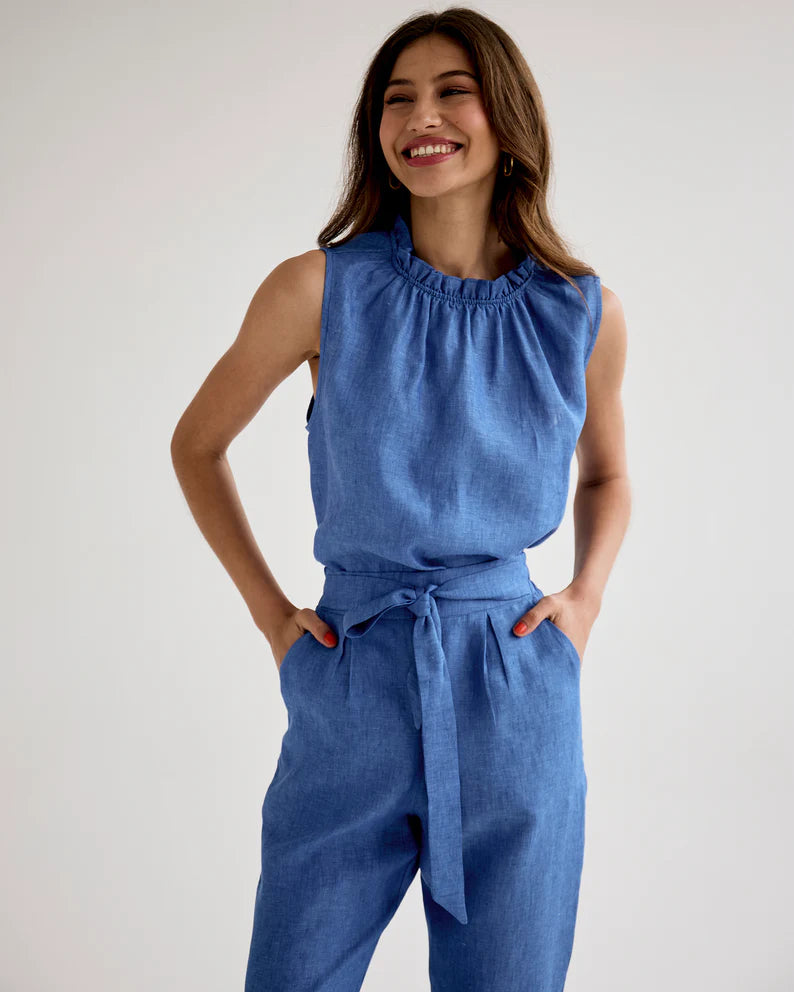 The Frill Neck Top makes its debut with effortless charm. A sleeveless top with a soft ruffle neckline, bringing a little romance to an everyday basic. A new GOOD classic in the making!